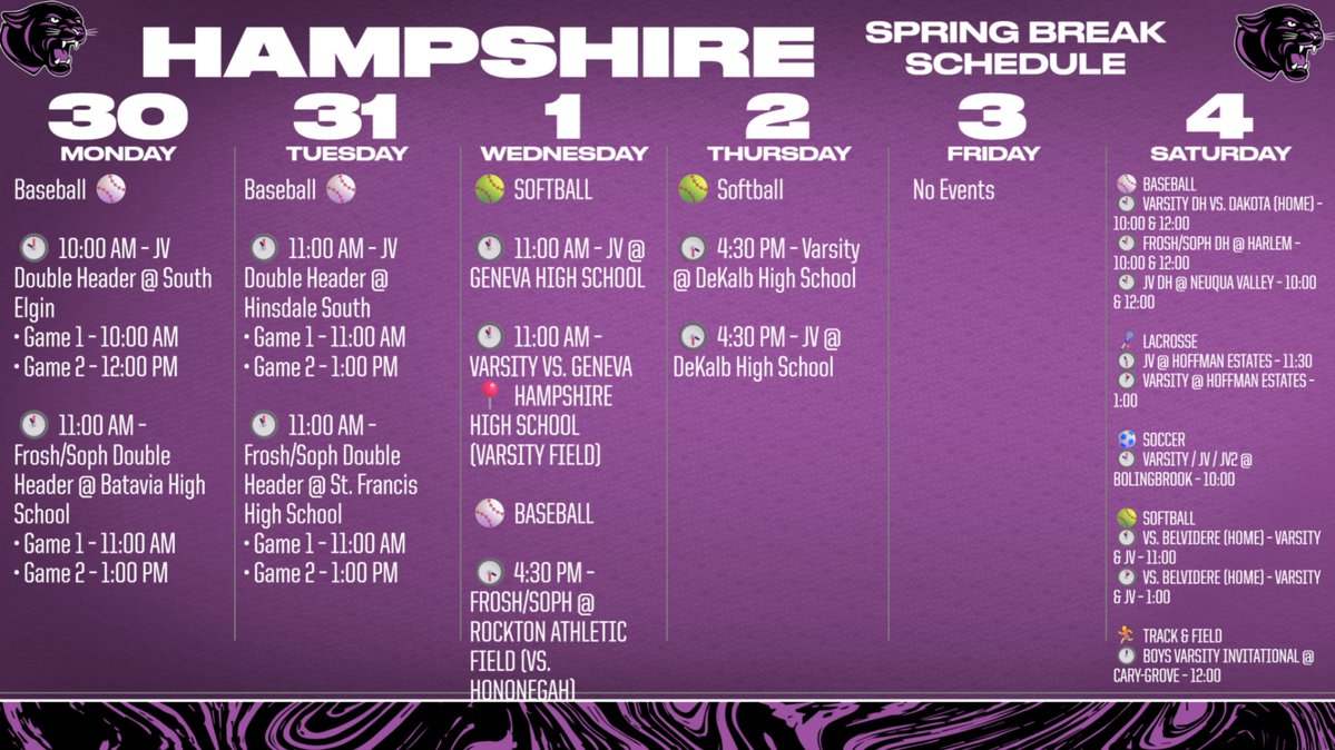 Hampshire High School Athletic Spring Break Schedule! Any Changes please check- https://www.foxvalleyconference.org/public/genie/981/school/16/
